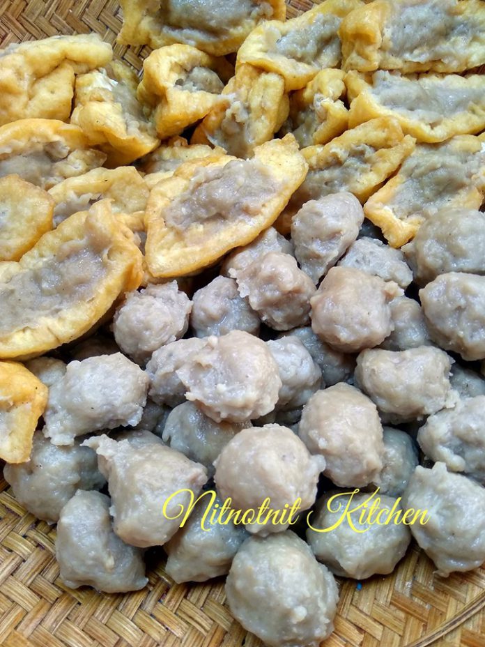 Untuk tahu bakso, campur 200 gr adonan bakso dengan bahan tambahan, masukkan ke tahu, kukus.