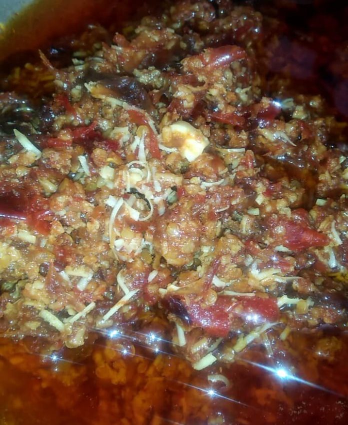 1. Tumis dulu cabe rawit , bawang merah, cabe merah, bawang putih hingga layu. Matikan. Tiriskan.