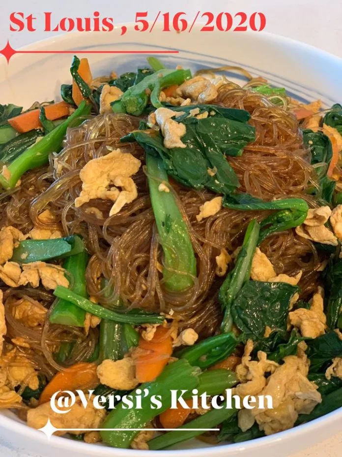 5. Panaskan wajan dengan api besar lalu masukkan minyak goreng tumis bawang putih sampai coklat lalu masukkan telur yang sudah disiapkan bikin orak arik lalu tambahkan sayuran bok choy juga wortel , masak sekitar 3 menit lalu masukkan mie soun yg sudah di rendam tadi tambahkan saus nya , aduk rata sekitar 2-3 menit angkat lalu sajikan.