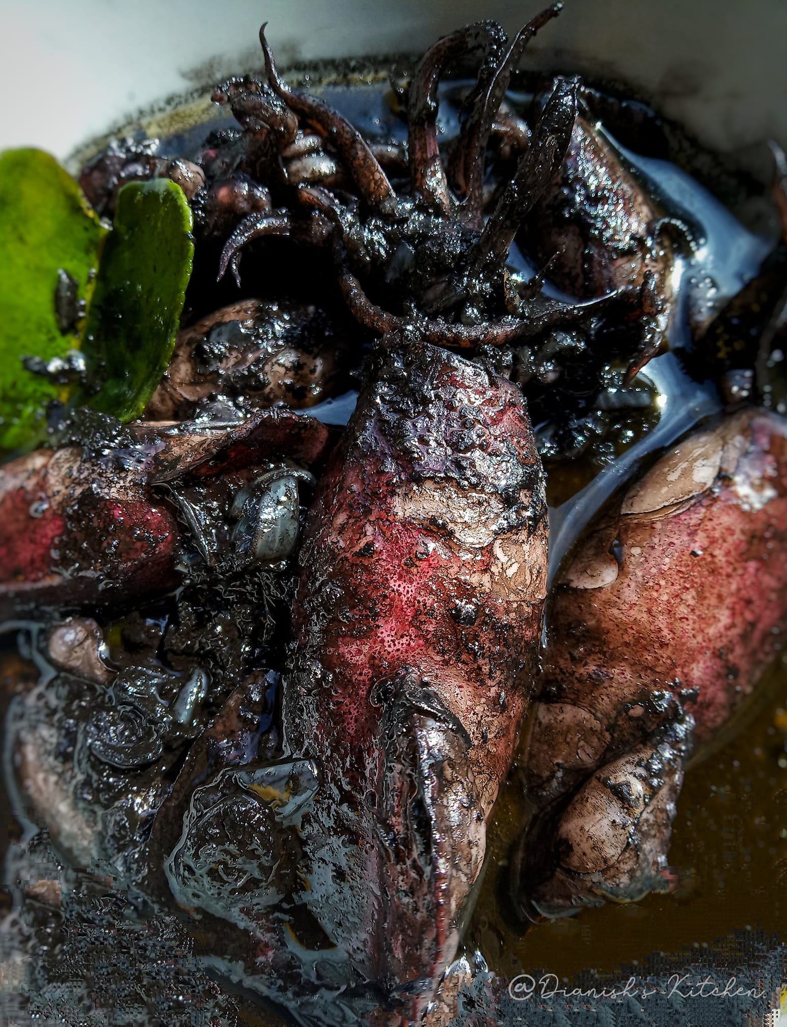 Entah kenapa saya dan keluarga lebih suka masak cumi dengan tintanya.