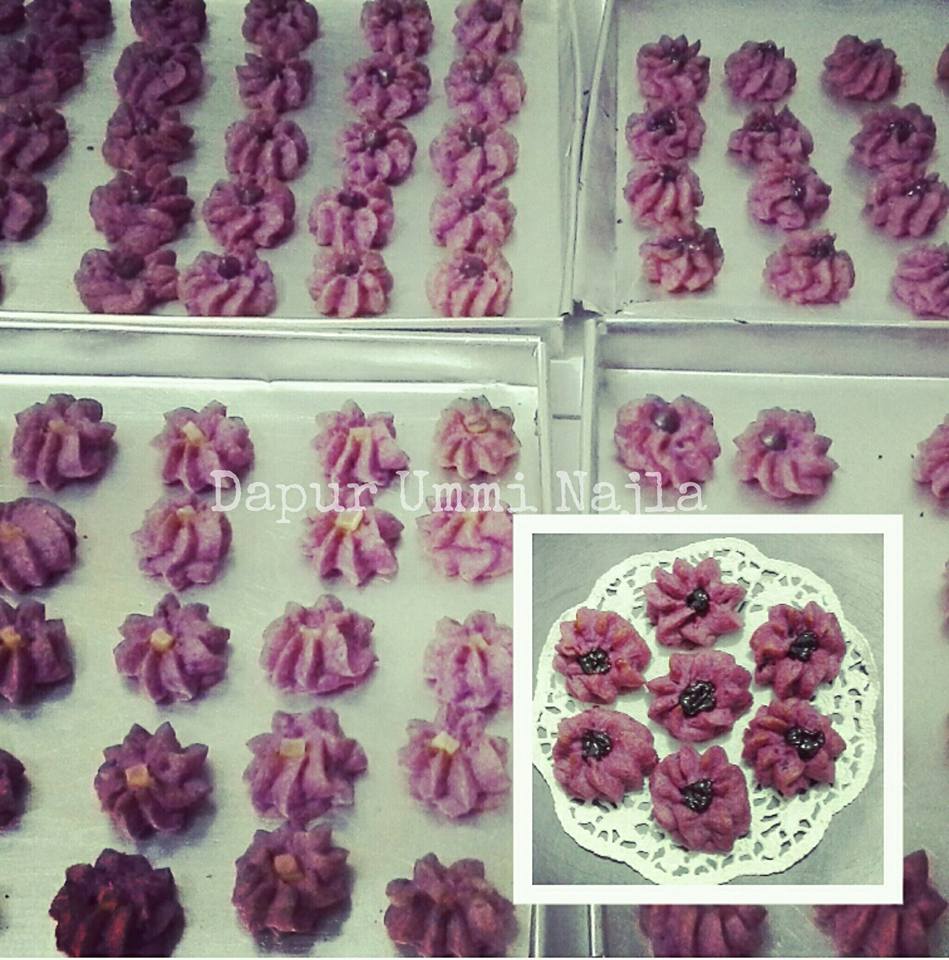 – masukan ubi ungu, dan tepung maizena, aduk dengan tangan sampai rata, masukan sedikit demi sedikit terigu, hingga adonan bisa dengan mudah di bentuk dengan spuit, hentikan menambah terigu jika dirasa cukup